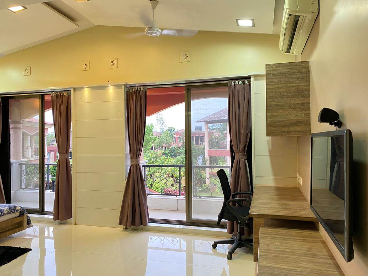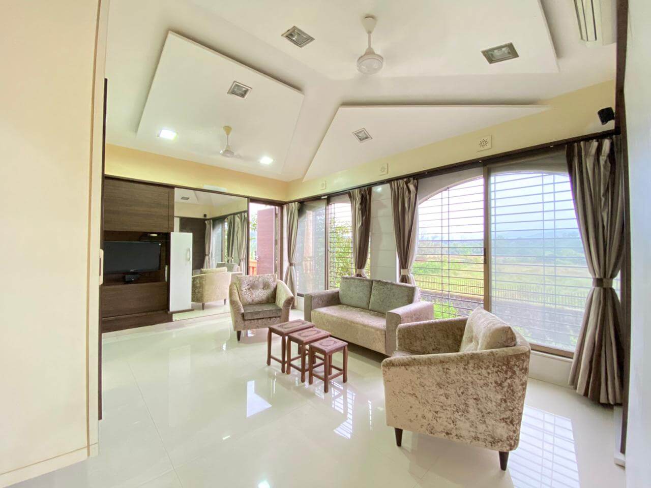 Premium Lonavala is your home away from home – it’s a fully equipped house with a living room and an Ac bedroom at the ground floor and 2 Ac bed rooms on the first floor, a common swimming pool and a pool for kids, terrace balcony with mountain and swimming pool view.